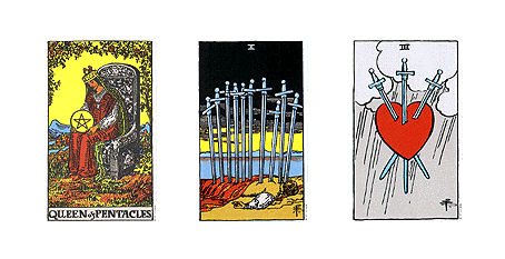 결과물이나 업무능력자체에 대해서는 실무자로서 딱 적당히 평가하고 있다고 보이는데(퀸펜타클), 10소드가 3소드를 본다면... 뭔가 다른 부분에서 밉보인 거 아닌가 싶을 정도입니다. 다른 팀원들과 트러블이 있었거나, 또는 아예 직접 그 팀장님이 질문자분에게 안 좋은 인상을 받을만한 사건이 있었거나요(3소드). 아니면 이 회사를 곧 떠날 사람처럼 보였거나(10소드)...