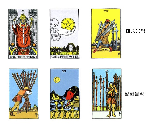 영화음악쪽은 아무래도 진입도 힘들어 보이고(10완드) 하다가 아니다 싶다는 판단이 들게 되실 것 같네요(8컵). 둘 중 하나라고 한다면 그나마 대중음악쪽이 나아보입니다(교황-에이스펜타클). 적성은 좀 다른 문제긴 한데.... 우선은 결과물이 빨리 나오는 쪽은 대중음악쪽으로 보이니... 뭐라도 시도해 보시는 게(에이스펜타클) 좋다고 해석됩니다.